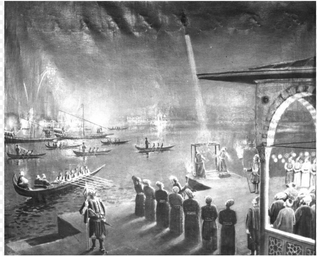 “While a pious hostess – “Mario of Protenios” – was digging on her property in Panormos, she found under a roof a small old icon of the Archangel Michael. With extreme secrecy, she took the Icon and carried it to the iconostasis of her house in Symi, where she was burning a dormant candle. The next day, however, she found that the Icon had disappeared. When she later went to her estate in Panormos, she found the Icon in its original position under the rope. The housewife brought the Icon back to her house, but it surprisingly returned to the place where it was found. This event was repeated three times. The woman’s sorrow ceased, when she saw in a dream the Archangel Michael, who expressed to her, his desire to remain in Panormos. After this, the pious woman now announced the fact and with the assistance of her compatriots, she erected a small naydrio, on which she enthroned the Admiral”.