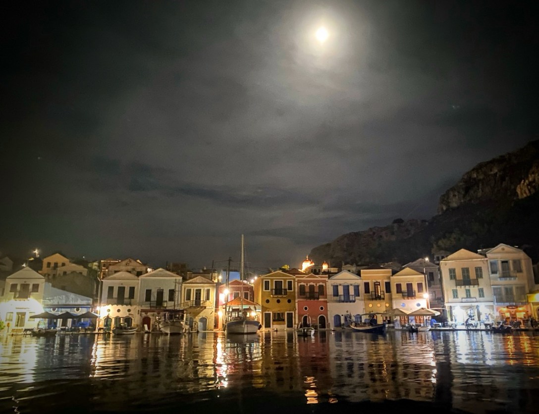 On that note, we left you in our last post as we headed for the little Greek island of Symi also known as Syme, Simi or Σύμη. This island is just 13 nautical miles (24.08 km) from Türkiye and on a good day you can sail across in just over two hours. Interestingly, it’s not the closest Greek island to Türkiye. This is claim goes to the tiny island of Kastellorizo (aka Castellorizo, Καστελλόριζο, Kastellórizo, Megisti) which is just 1.4 nm (2.5 km) from the Turkish mainland. You can sail this in about ¼ of an hour, not including raising and lowering the anchor. We visited Kastellorizo twice in the last 18 months, once with the lovely Rhonda; here are some photos of this gorgeous little Greek island.