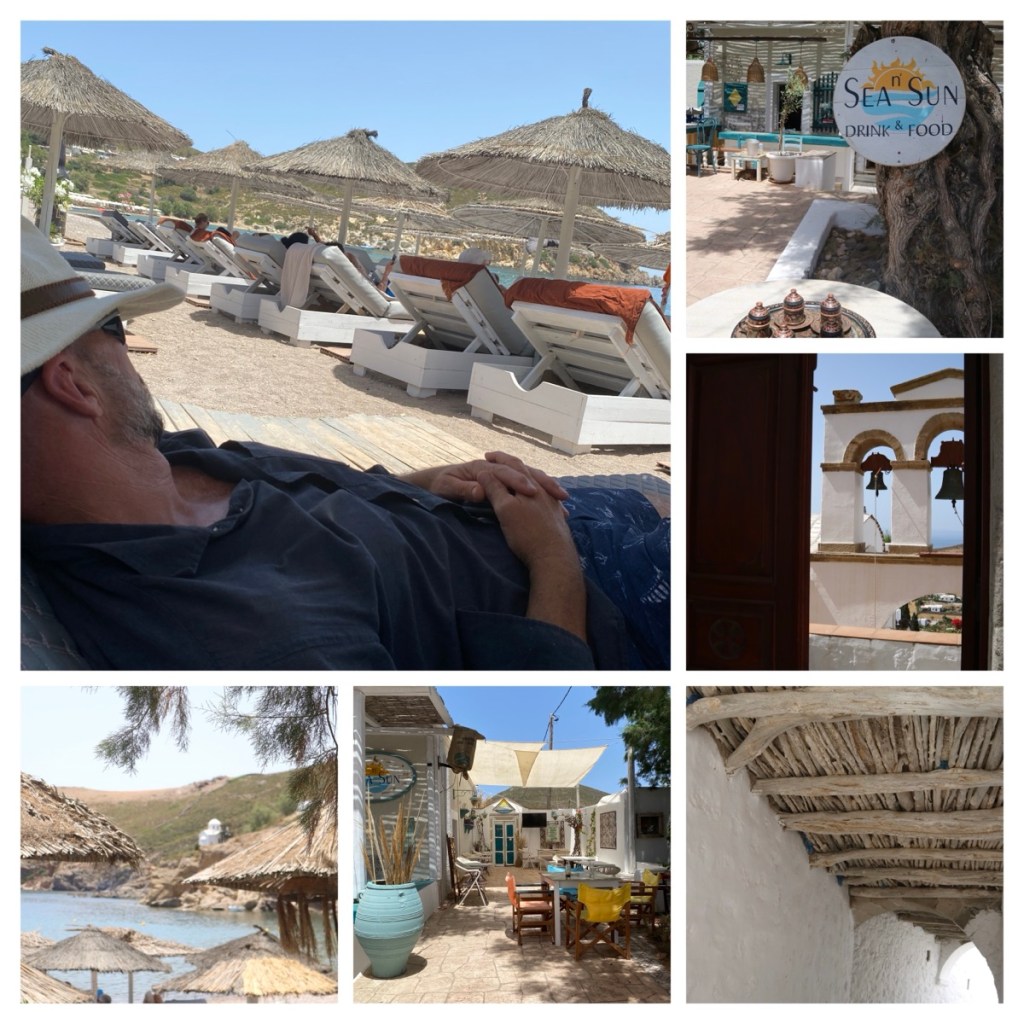 The monastery is a beautiful 18th century Venetian building with the highest baroque bell tower in the world. Within its wall is a church, which is reasonably new, but it rests on the foundations of an earlier church dating back as far as 450 CE. This older church rests over an ancient temple dedicated to Apollo. Panoramitis is amongst my most treasured places from our adventures. Its tranquillity is only broken by the bells ringing out to welcome the small tourist boat that brings folk from the nearby island of Rhodes once or twice a day.